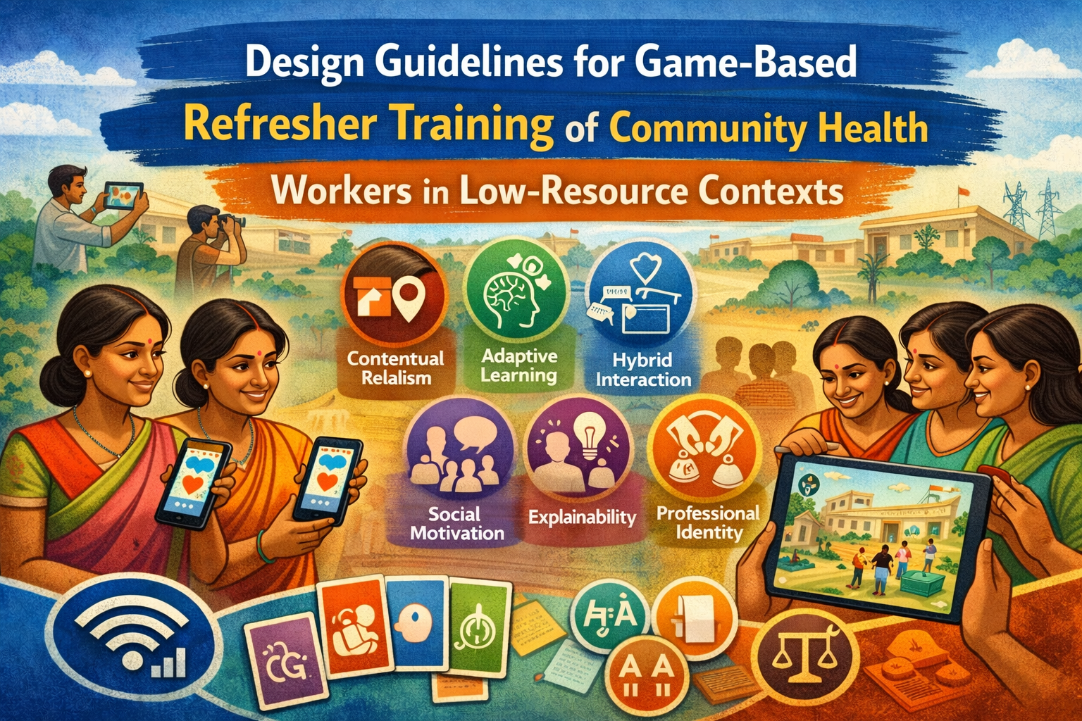 Community Health Workers (CHWs) play a critical role in delivering primary healthcare services in low-resource settings, yet sustaining their training and performance remains a persistent challenge. Prior research has explored digital and game-based approaches for CHW training. However, limited work has synthesized longitudinal design insights into generalizable guidelines for interactive health interventions. Building on a four-year design-based research program involving multiple game-based refresher training systems, including quiz-based mobile apps, physical and augmented reality games, card-based games, and location-based games, we examine which design guidelines support sustained engagement, learning transfer, and contextual appropriateness in CHW training. ... Community Health Workers (CHWs) play a critical role in delivering primary healthcare services in low-resource settings, yet sustaining their training and performance remains a persistent challenge. Prior research has explored digital and game-based approaches for CHW training. However, limited work has synthesized longitudinal design insights into generalizable guidelines for interactive health interventions. Building on a four-year design-based research program involving multiple game-based refresher training systems, including quiz-based mobile apps, physical and augmented reality games, card-based games, and location-based games, we examine which design guidelines support sustained engagement, learning transfer, and contextual appropriateness in CHW training. We conducted a mixed-methods analysis across deployments with Accredited Social Health Activists and Anganwadi Workers in India, including interviews, field observations, and usage logs. Through thematic synthesis, we derive eight design guidelines addressing contextual realism, adaptive learning, hybrid interaction, social motivation, explainability, professional identity, and ethical considerations. Our findings contribute actionable design knowledge for researchers and practitioners developing interactive health interventions in low-resource healthcare contexts.